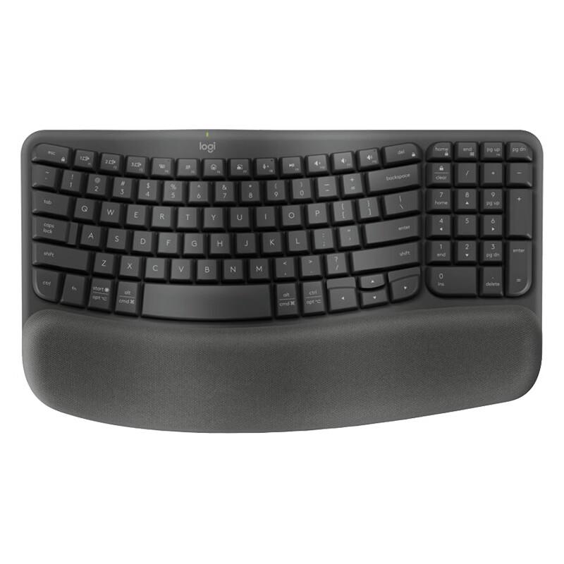 Experience comfortable and efficient typing with the Logitech WAVE KEYS Wireless Ergonomic Keyboard. Designed for a natural typing posture, this keyboard offers seamless multi-device connectivity via Bluetooth, supporting Windows, macOS, and iOS. Its wave-shaped key layout and integrated palm rest provide superior comfort for long work sessions.