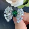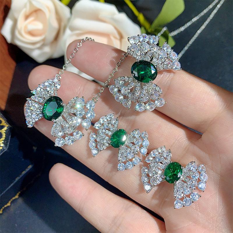 New Jewelry Set Necklace Earrings Ring Emerald Fashion Commuting Light Luxury Butterfly Versatile Women