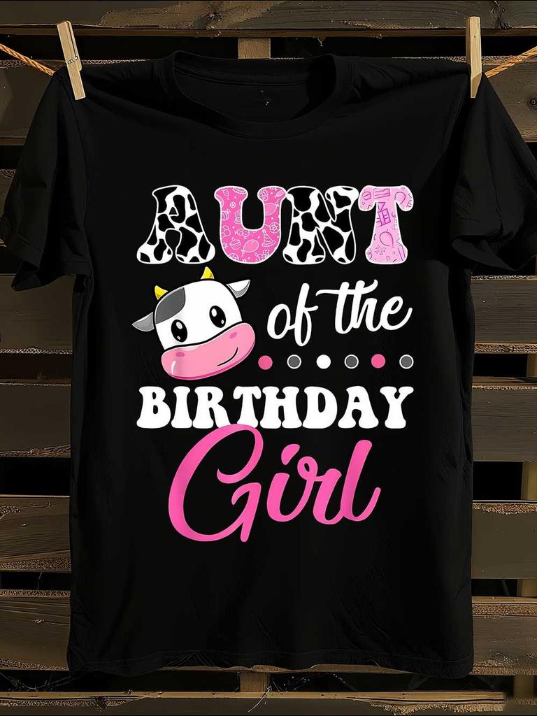WoAunt of the Birthday Girl Cow Print T-Shirt Mens Tshirt Womens Tshirts with Letters Print Short Sleeves T-Shirt Casual Street Tee Shirt Top