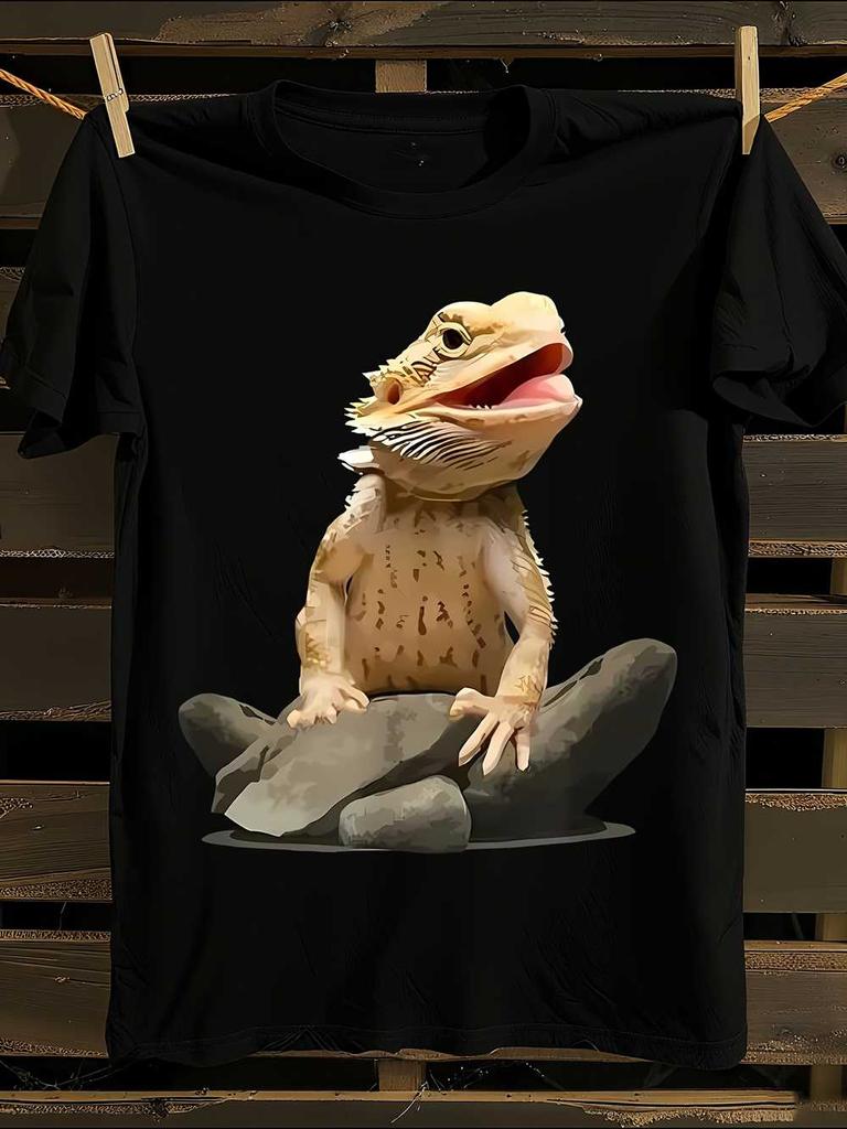 Bearded Dragon Gecko Print T-Shirt Mens Tshirt Womens Tshirts with Letters Print Short Sleeves T-Shirt Casual Street Tee Shirt Top