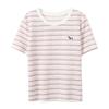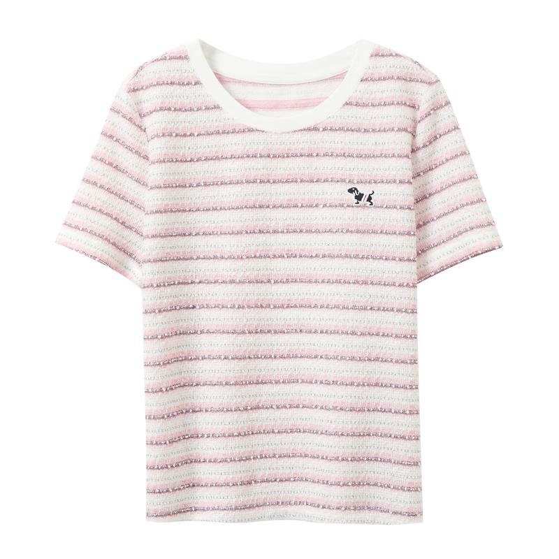Sancai Women's Textured Striped Embroidered Short Sleeve T-Shirt