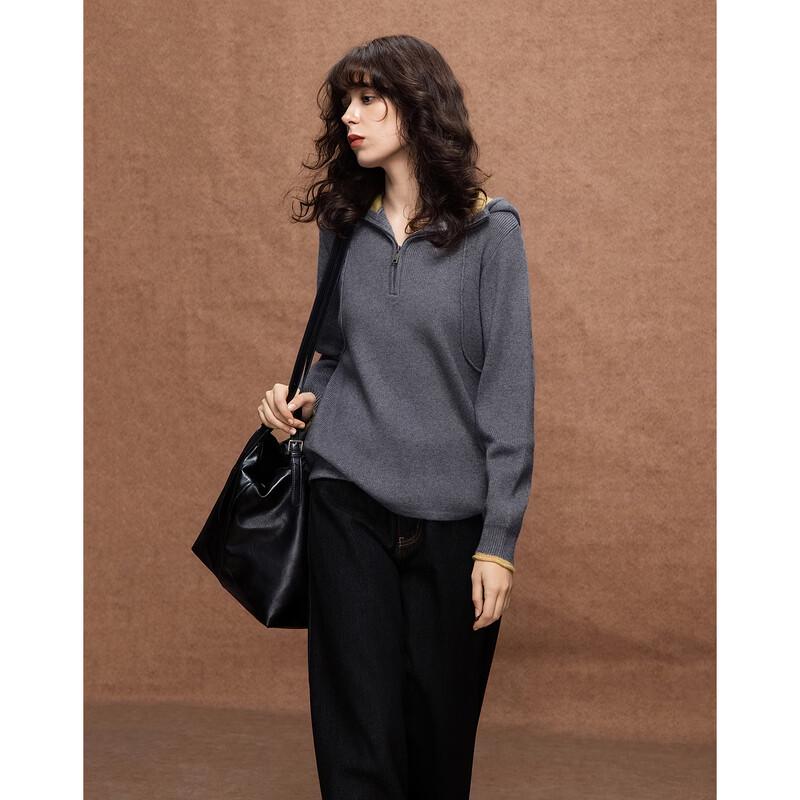 Women's Hooded Half-Zip Color Block Knit Sweater