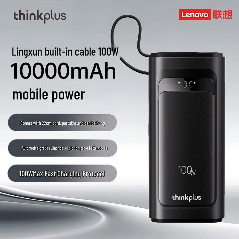 Lenovo ThinkPlus LingXun 100W 10000mAh Portable Laptop Power Bank with Built-in Cable