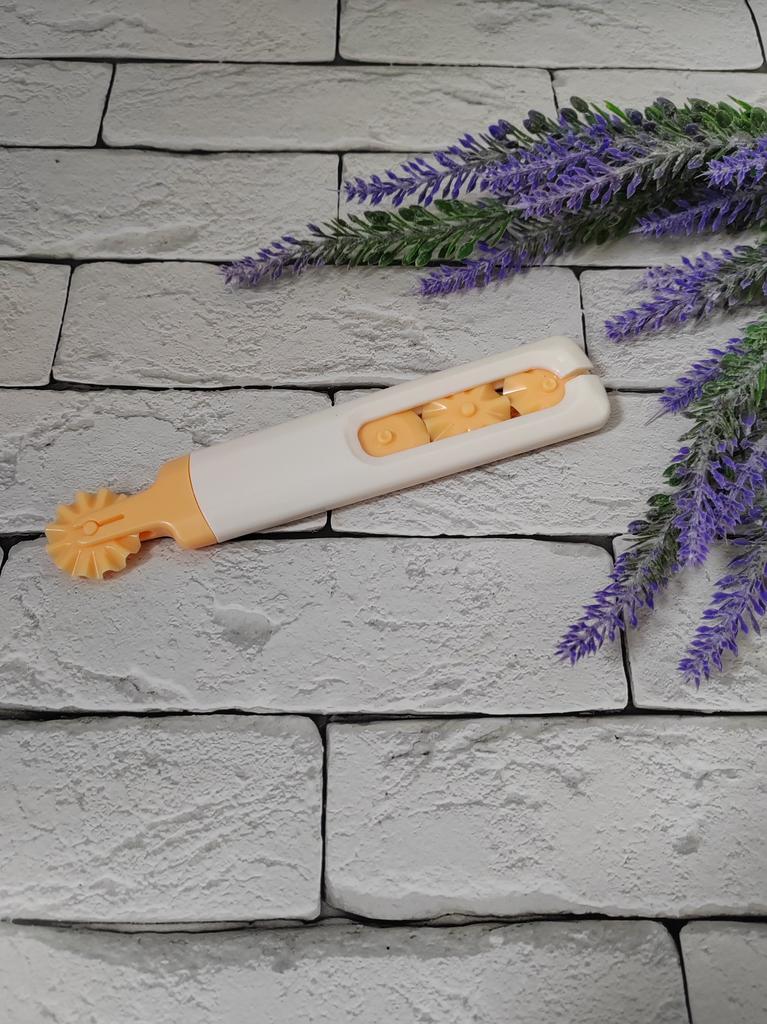 Váleček na vykrajování těsta V balení je několik druhů vyměnitelných nástavců. Tři nástavce jsou uloženy v rukojeti. Nástavce jsou všechny rozmanité. Lze vytvářet jak velké, tak jemné vlny a rovné linie.. Bude se hodit tomu, kdo rád peče krásné pečivo. Těsto se krájí snadno, kolečka se volně otáčejí. Skvělý nástroj pro ty, kdo milují domácí pečení. Doporučuji koupit.