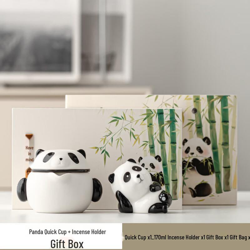 Panda Quick Tea Cup & Incense Holder Gift Set