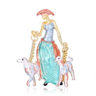 Módní osobnostní brož pro venčení psů s moderní dívkou, slitina, kapající olej, oděvní doplňky, protisvětelný obojek