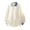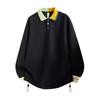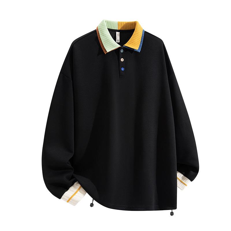 Men's Oversized Color Block Collar Long Sleeve Polo Shirt, Drawstring Hem Casual Top with Contrast Buttons, Streetwear Sweatshirt
