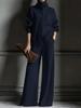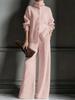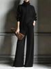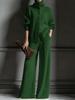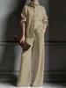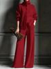 Podzim Zima Nový Pletený Kardigan s Vysokým Límcem Jednobarevný Dlouhý Rukáv Široké Kalhoty Set 2dílný Outfit