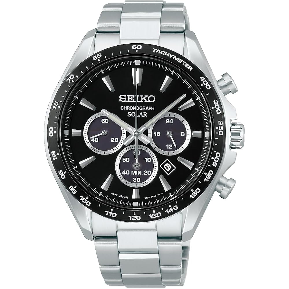 Seiko Selection SBPY185 Men's Solar Chronograph Watch Black Date Calendar Silver S Series