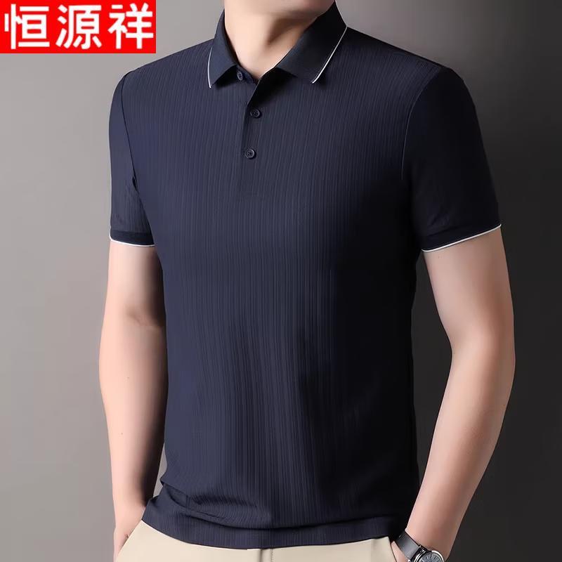 Hengyuanxiang Men's Vertical Stripe Jacquard Polo T-Shirt