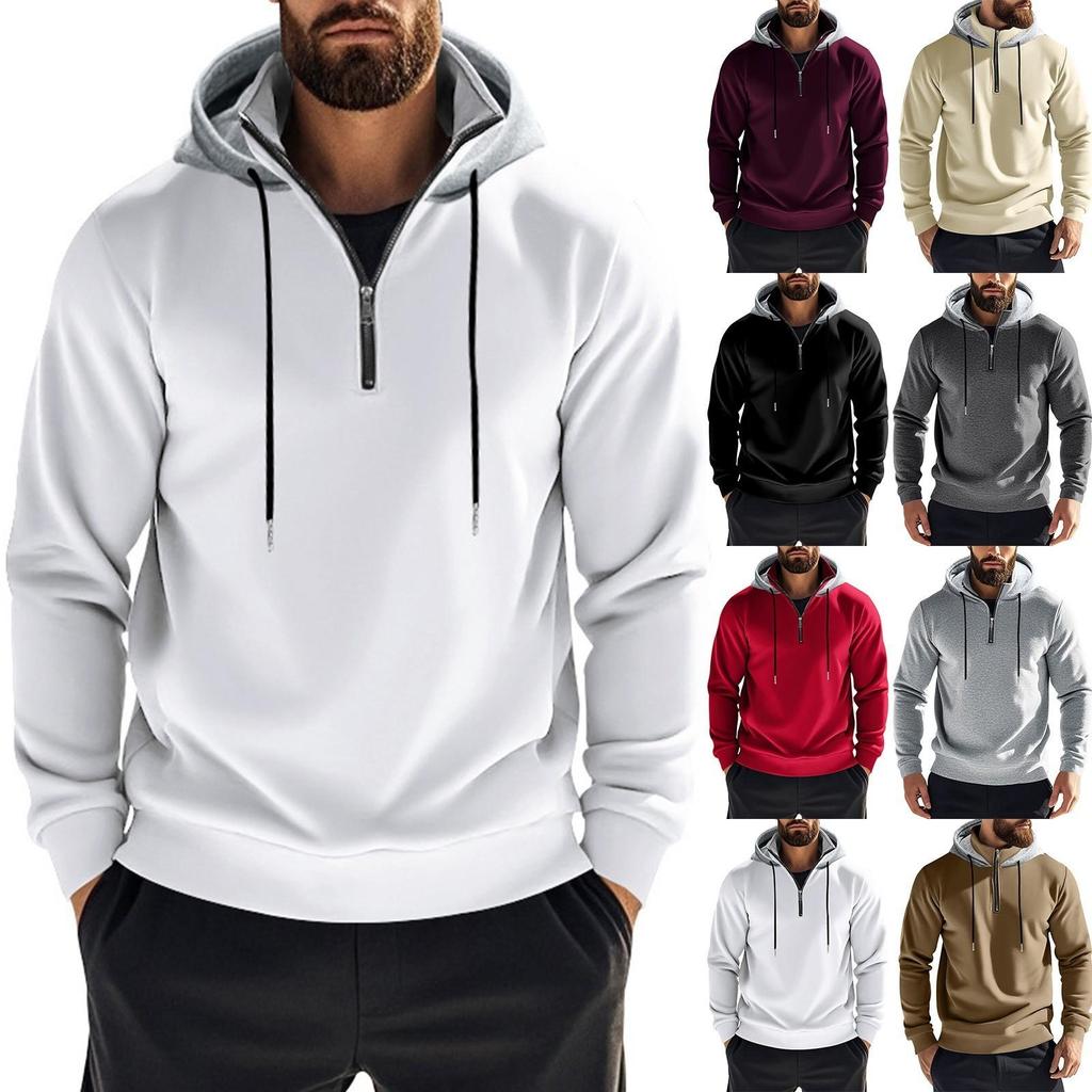 Zimní pánská fleecová mikina Sportovní pánská bunda s kapucí s dlouhým rukávem a půl zipem
