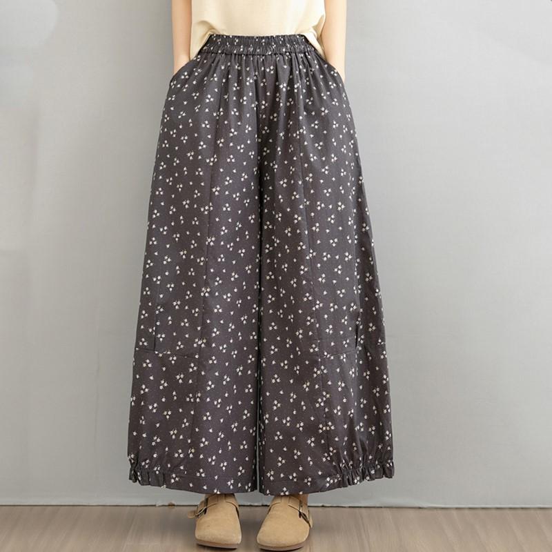 Plus size Vintage plaid high Waist Casual loose spring Summer wide leg Pants Women Trousers