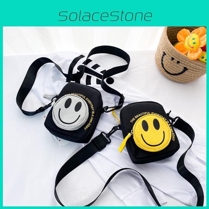 Modern Trendy Smiley Face Crossbody Bag For Kids Stylish Canvas Coin Purse With Fun Design