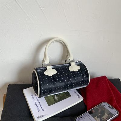 Elegant Boston Shoulder Bag Large Capacity Cylindrical Bag Vintage Polka Dot Bowling Bag Girls