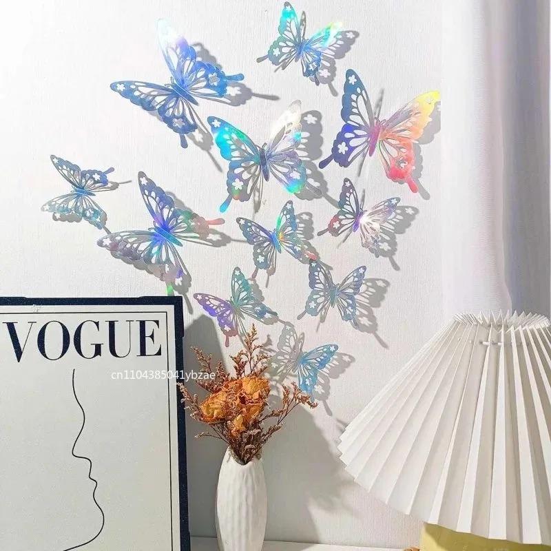 12Pcs/Set 3D Hollow Wall Stickers Butterflies Mirror Wall Art Party Wedding Decoration DIY Home Decor Stickers Fridge Wall Decal