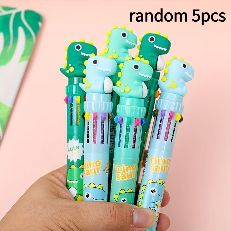 5pcs Dinosaur-Themed 10-Color Retractable Ballpoint Pen - Fun Creative Stationery Gift