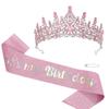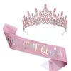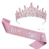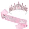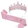 Birthday Queen Pink Crown Strap Set Birthday Queen Crystal Rhinestone Crown Party Accessories