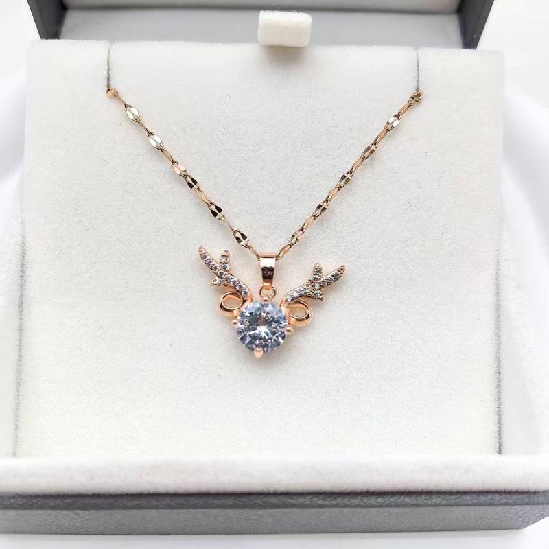 1 Pcs Fashionable Women's Necklace Copper Pendant Glass Antlers with Steel Collarbone Chain Girl's Beautiful Gift