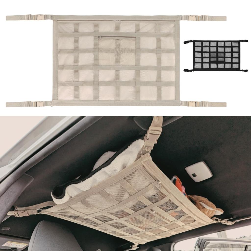 [Ensures clear visibility even with luggage placed inside] This car ceiling storage net features an added bottom belt and is made of a material that resists stretching, preventing it from sagging under the weight of luggage and ensuring a clear view while driving. *This does not apply to vehicles with low ceilings or kei cars (mini cars).