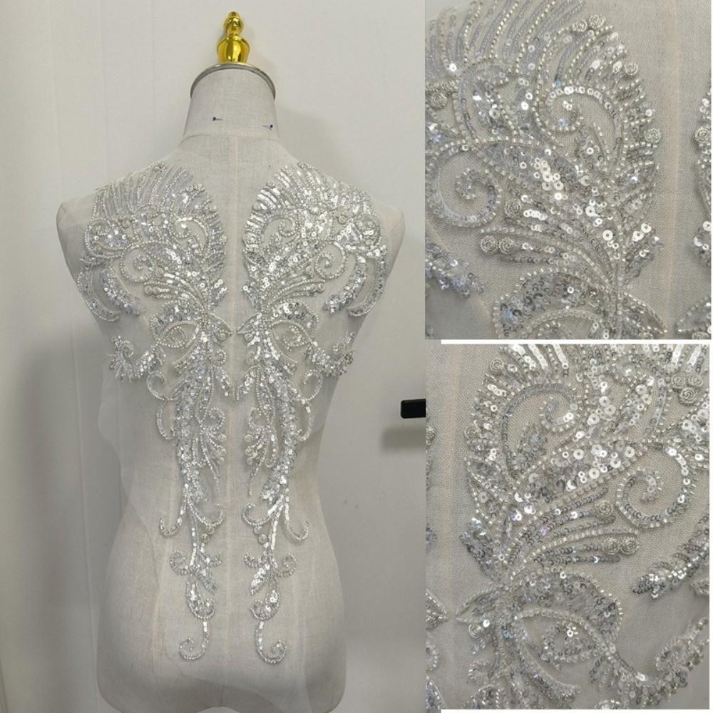 White Flower Lace Bodice Applique DIY Sew On Patches Sequin Embroidery Sewing Patch for Dress