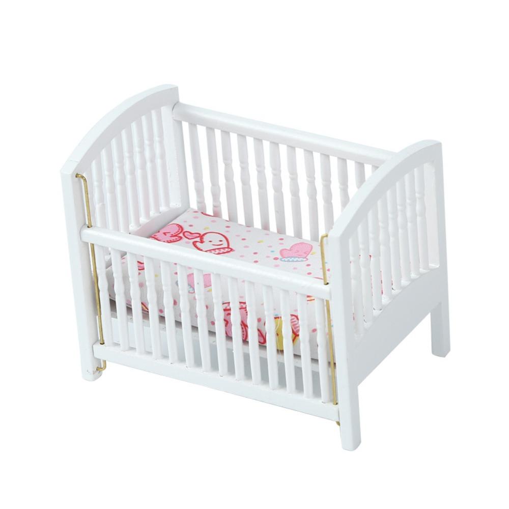 1:12 Baby Crib DIY Fitments Dollhouse Furniture Model Dollhouse Baby Bed Bedroom Model Decor Toy