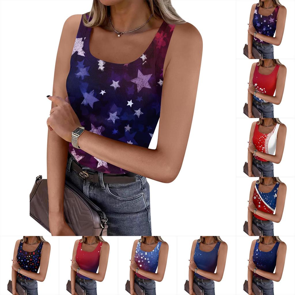 Women's Summer Fashionable Casual Independence Day Printed Round Neck Sleeveless Top Fitted Vest