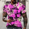 3D digital printed short sleeved T-shirt casual slim fit men's round neck top comfortable streetwear