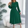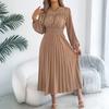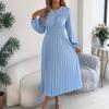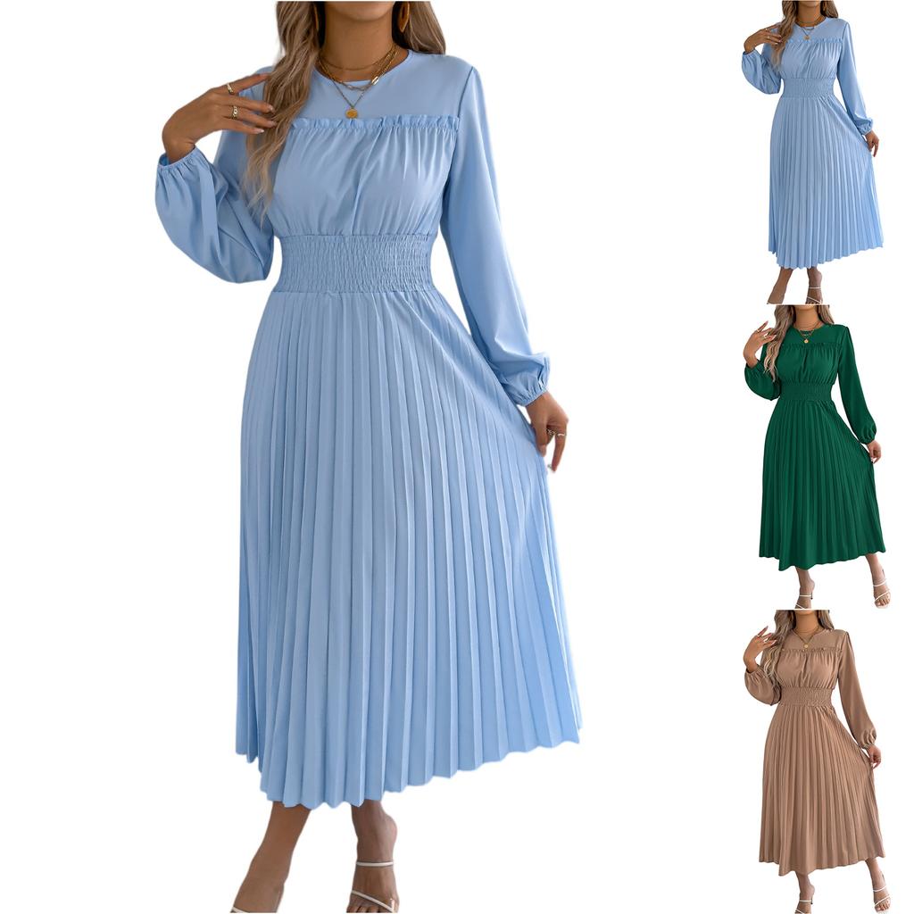 Dámské ležérní kulatý výstřih s lemem kolem uší dlouhý rukáv úzký pas plisované šaty