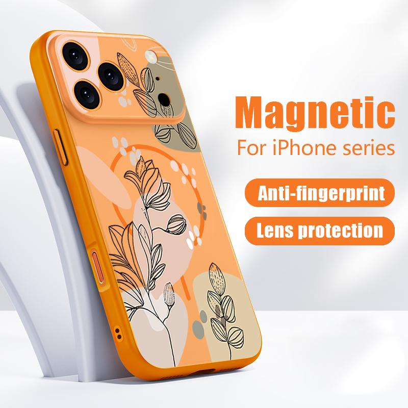White Magnolia Flower Pattern Case For iPhone 17 Pro Max Magnetic For Magsafe Hybrid Slim Matte Cover For iPhone 16 15 14 13 Pro Max