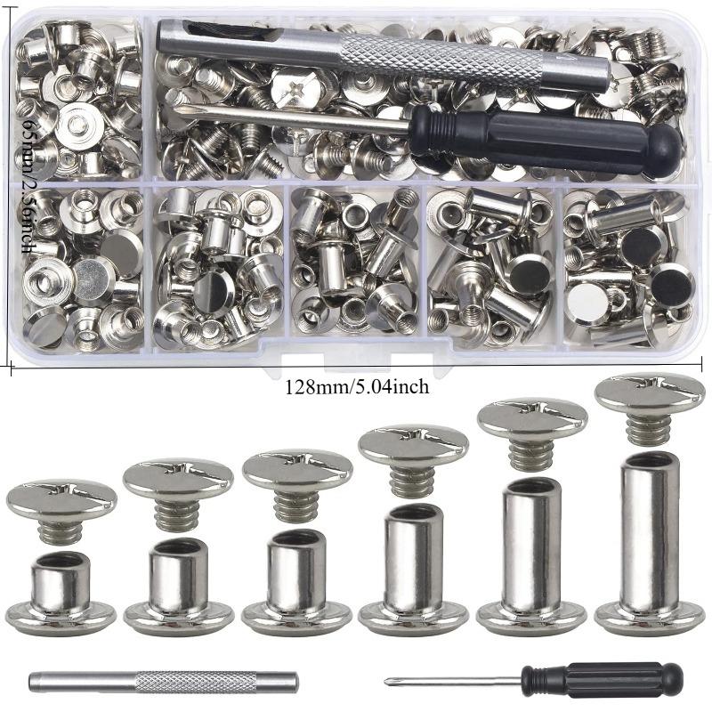 110 SADA nýtových šroubů pro zdobení a opravu koženého zboží, vhodné pro opasky, tašky, boty, peněženky, spojování M5 * 4, 5, 6, 8, 10, 12