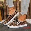 Women's Low Top Leopard Design Casual Sneakers Spring Autumn New Style Lace-up Flat Shoes Ladies Comfortable Footwear