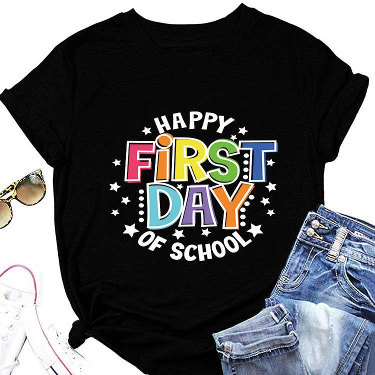 Summer loose crewneck Tshirt happy first day of printed casual shortsleeved fashion top