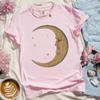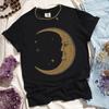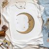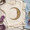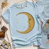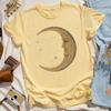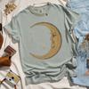 Women Retro Loose Short Sleeve Top Boho Moon Print Shirt Comfort 100 Cotton Crewneck Tshirt Casual Daily Fashion Streetwear