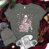 Street Christmas Fashion Short Sleeve Tshirts for Women Festive Skeleton with Coffee Tree Print Tshirt Festive Holiday Tee Top