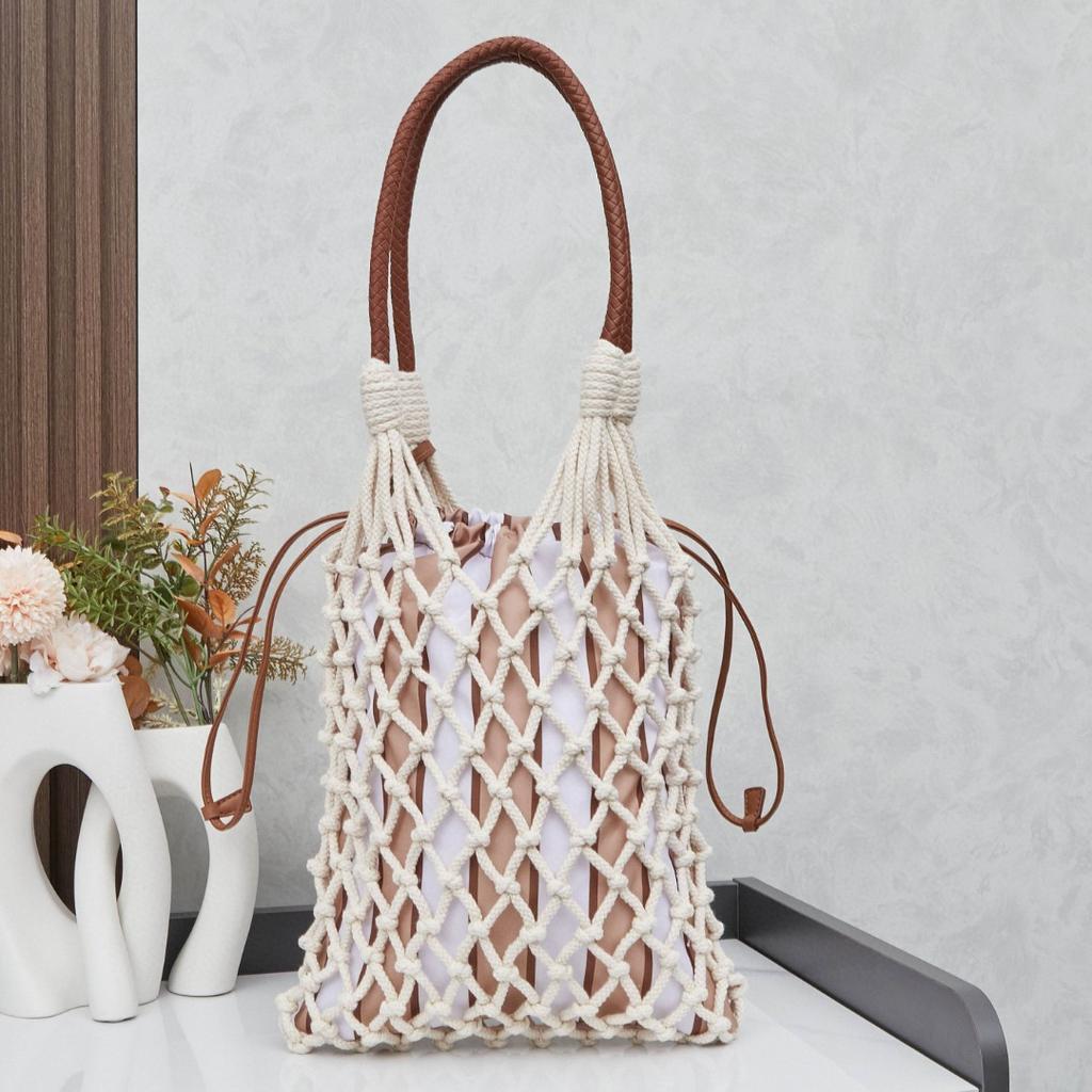 Malá niche designová dutá dekorace Pletená taška 2025 Volný čas Dovolená Plážová síťovaná Ruční Taška přes rameno