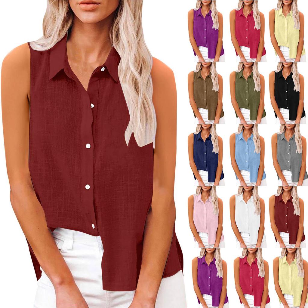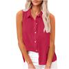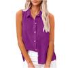 Women's Fashion Casual -Colour Sleeveless Cardigan Collar Cotton-Linen Button-Down Shirt T-Shirt Top