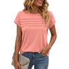 Women's Casual Top Monochrome Pleated Top Round Neck Short Sleeved Shirt