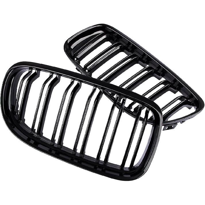 Front Bumper Kidney Grille, Pair Gloss Black Grill Double Line Compatible with 2009-2011 BMW E90 328i 318i 320i 323i 325i 330i 335i