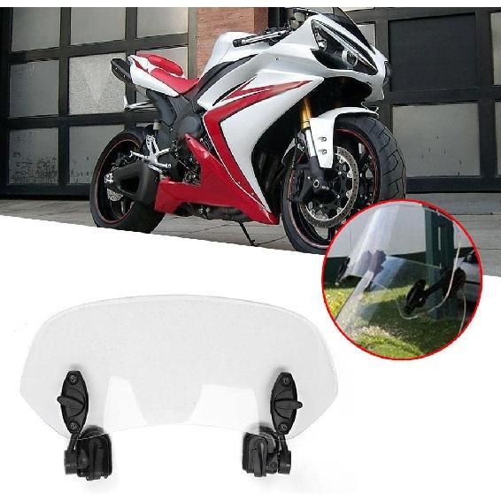 Motorcycle Windscreen Deflector, Adjustable Clip-On Transparent ABS Windshield Spoiler with Tool-Free Installation for Reduced Wind Noise & Enhanced