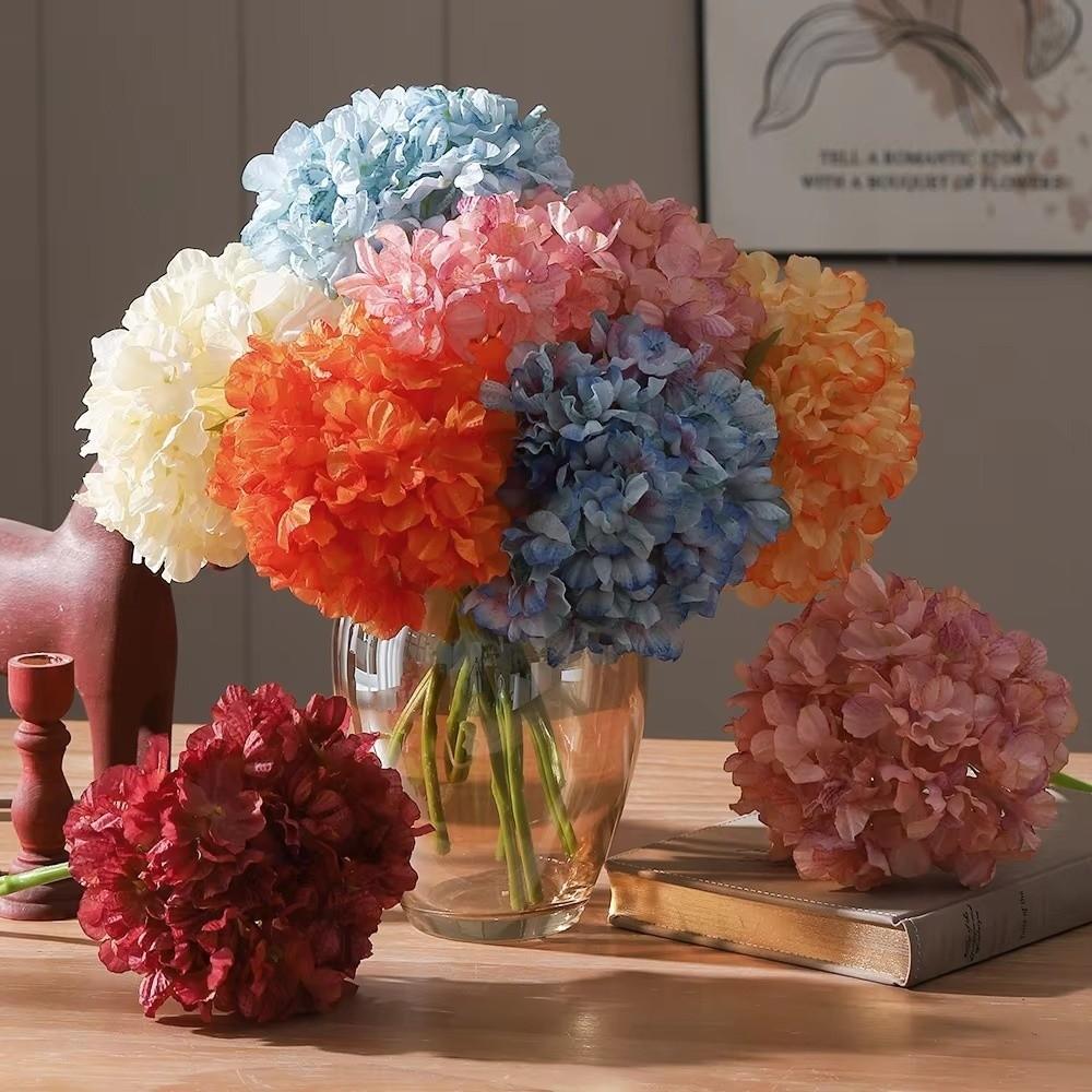 Realistic Look Hydrangea Artificial Flowers Bouquet Reusable Silk Flower Living Room Decoration