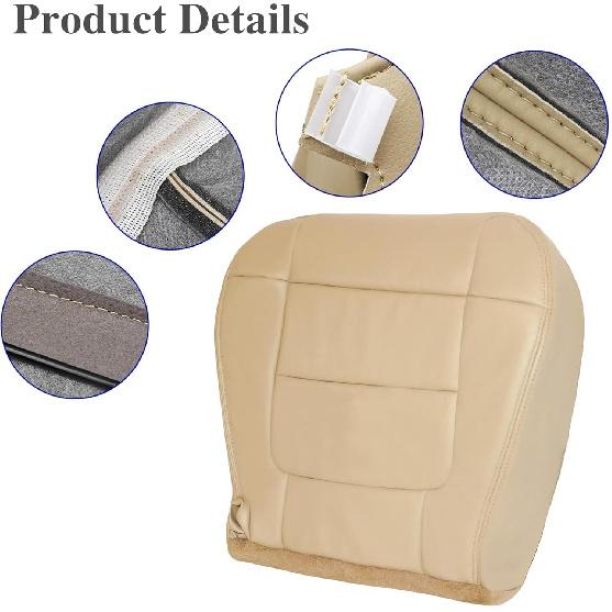 Front Driver Side Bottom Leather Replacement Seat Cover Tan Compatible with Ford F150 Lariat Super Crew 2001 2002 2003