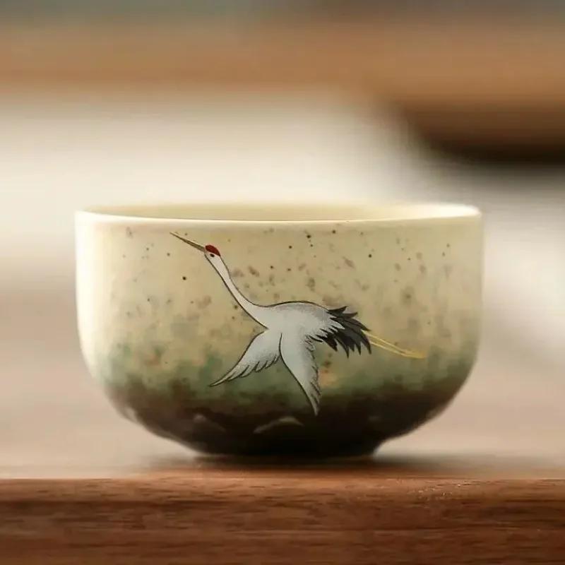 1PC Crane Tea Set Single Cup Tea CupPattern Retro Ceramic Coffee Mug Home Drinking Utensils Chinese style