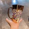Sparkling Heart Diamond-encrusted Glass Coffee Mug Cup Light Luxury Tempered Glass Milk Tea Beverage Cup With Handle Water Mugs