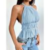 VEZFAA Dámská móda Ležérní Léto Jaro Jednobarevný potisk Halenky a košile bez rukávů