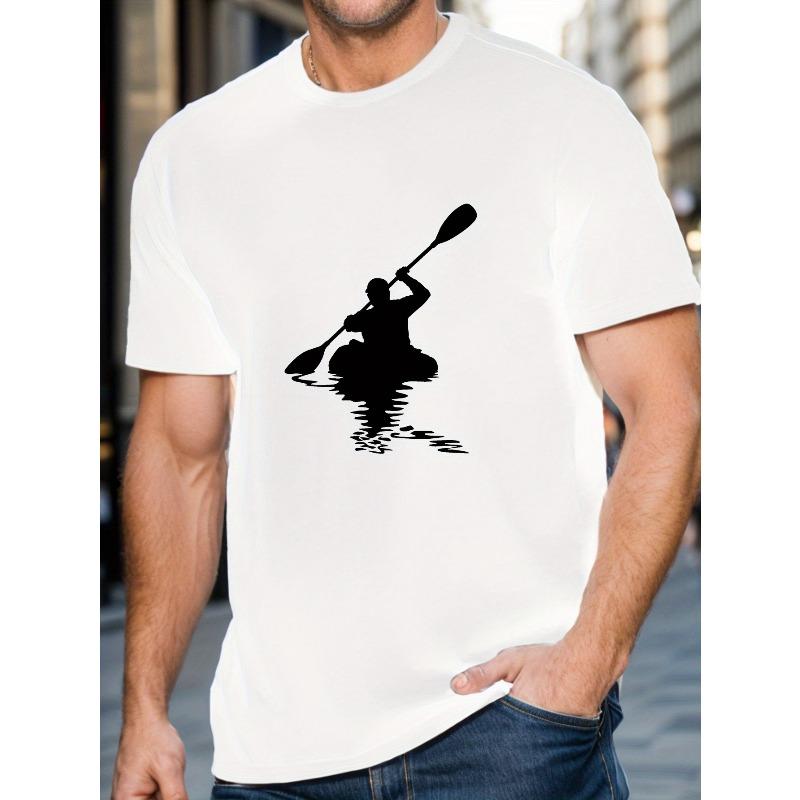 European Size Men's Kayaking Silhouette Print Short Sleeve T-shirt, Summer T-shirt Top