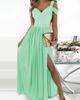 2024 Bestseller European & American Women's V-neck Sleeveless Printed Slit Long Dress
