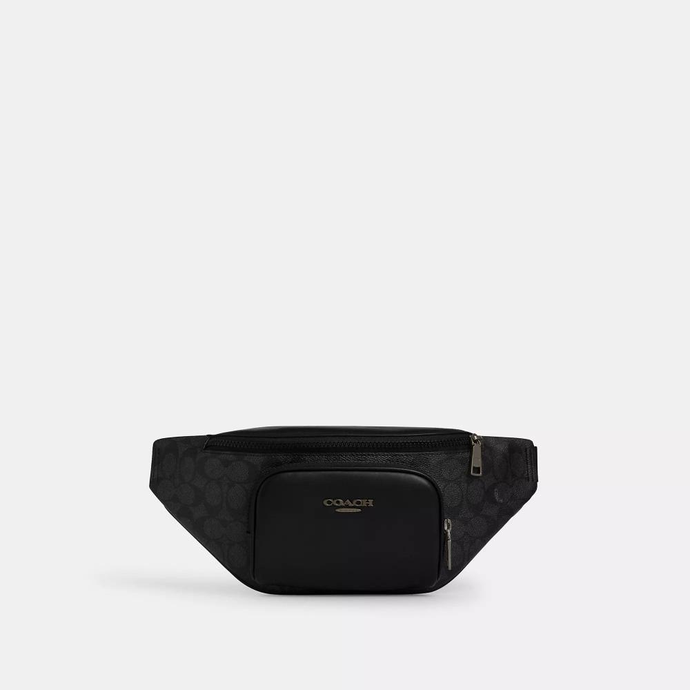 Coach Racer Small Belt Bag In Signature Canvas Gunmetal Charcoal Black