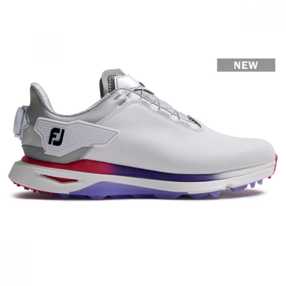 The Women’s Pro SLX WHITE / PURPLE / MULTI 98199 is a golf shoe released by FootJoy, featuring the finest full-grain leather that offers a soft, luxurious appearance. It is made with ChromoSkin leather, which is flexible and provides 100% waterproof functionality, ensuring stable comfort regardless of moisture or weather. The Strato Foam FTF™ midsole developed for golf offers the best in cushioning and support while the combination of 3D X-Wing and PWR TRAX System provides stability and efficiency during swings.