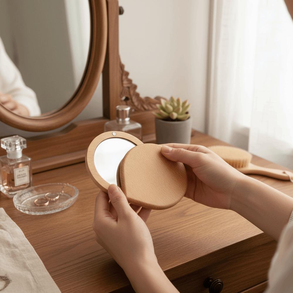 Foldable Wood Makeup Mirror Rotatable Small Mirror Portable Pocket Mirror Outdoor