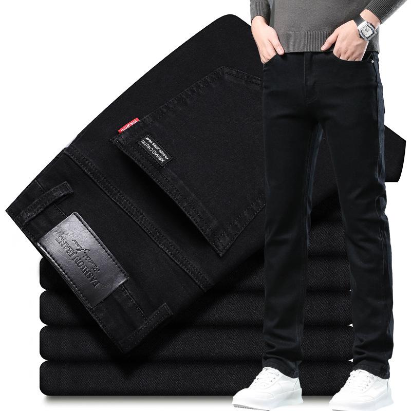 Podzimní Nové Silné Čistě Černé Pánské Džíny Strečové Slim Fit Všestranné Kalhoty Kalhoty s Rovnou Nohavicí High-End Ležérní
